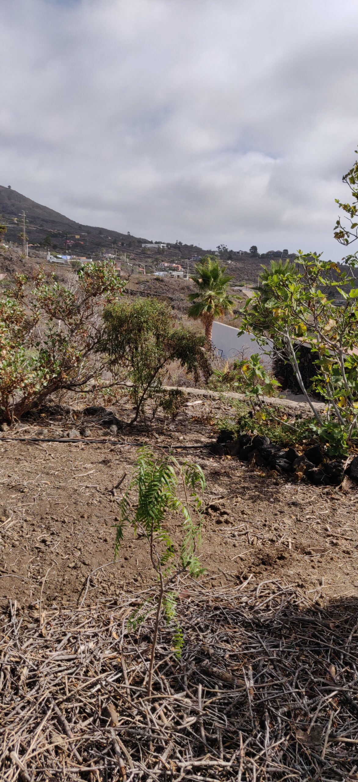 - Bestehende Pflanzen oder Wurzeln wieder beleben, insbesondere die grosse Palme beim Haus und die alten Mandelbäume