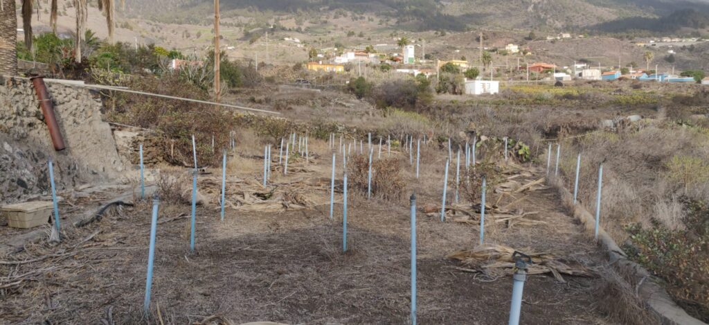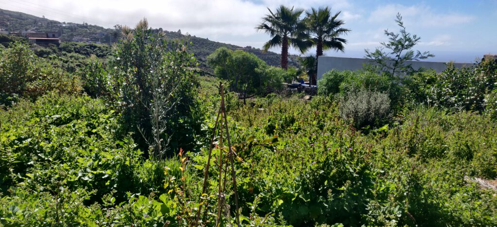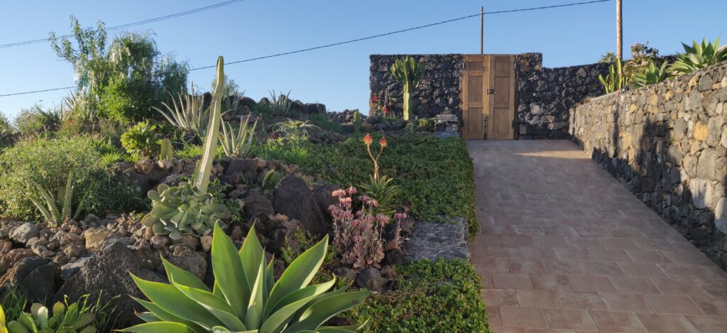 Zur Finca gehört auch ein grosser Garten mit ca. 2000 m2. Ohne Pflege und infolge des wenigen Regens der letzten Jahre waren viele Pflanzen bei der Übernahme der Finca verdorrt. Nur ältere und sehr spezialisierte Pflanzen überlebten.