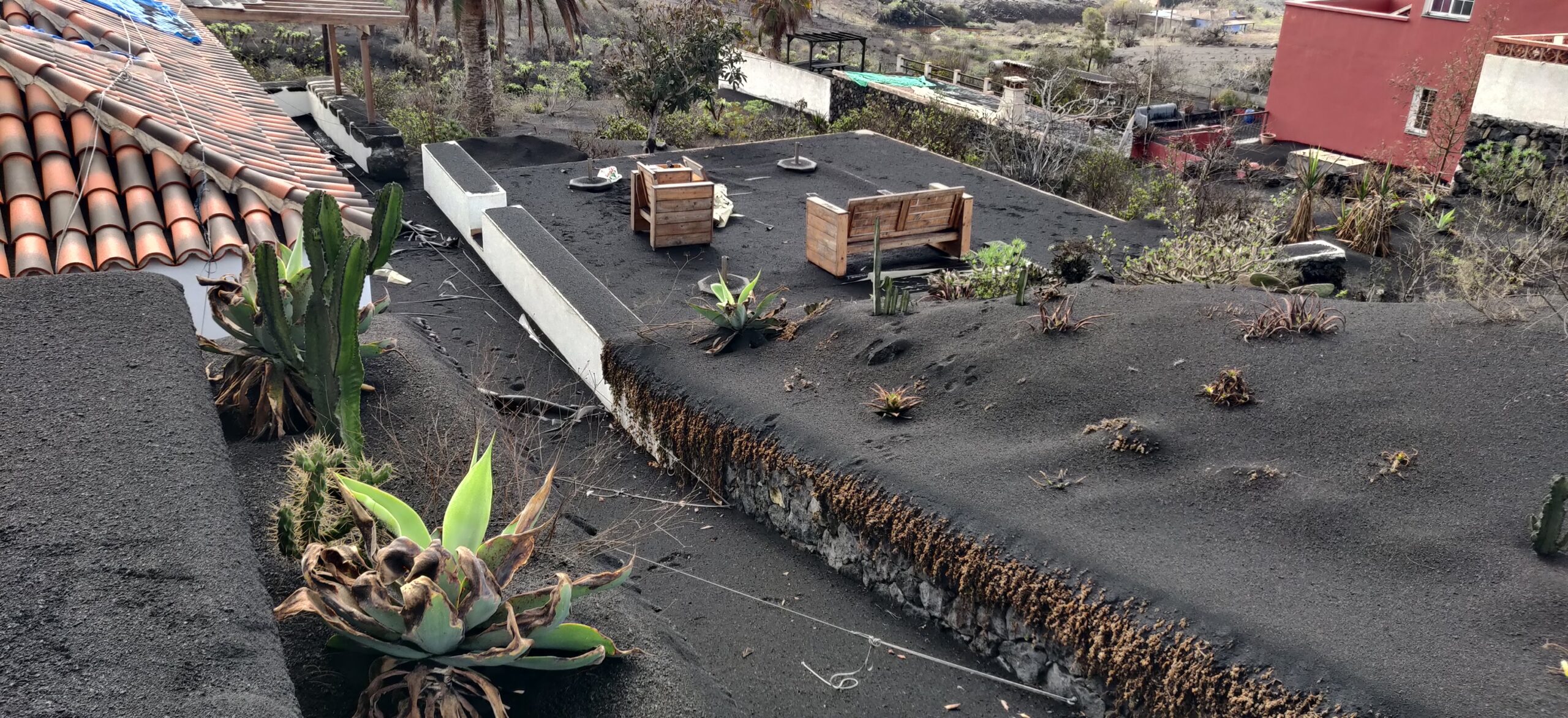 Auch die Finca blieb nicht unverschont. Das ganze Gelände wurde mit ca. 30cm Vulkanasche bedeckt. Dies ist ein so leichter und körniger Sand. Eigentlich gut für den Boden, aber in diesem Ausmass doch zu viel.